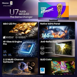 Hisense 85-Inch U7 Mini-LED ULED 4K UHD Best Premium Gaming Google Smart TV, QLED, Native 165Hz, VRR 288, Up to 3000 Nits, HDR10+, Dolby Vision IQย Atmos, IMAX Enhanced, 2.1.2 Ch, 85U75QG