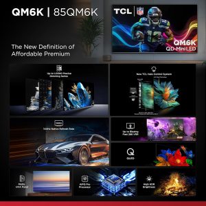 TCL 85 Inch Class QM6K Series, Mini LED QLED 4K HDR, 120Hz-144Hz High Brightness Smart Google TV Dolby Atmos Onkyo Audio, Voice Remote Alexa Gaming Streaming Television, 85QM6K