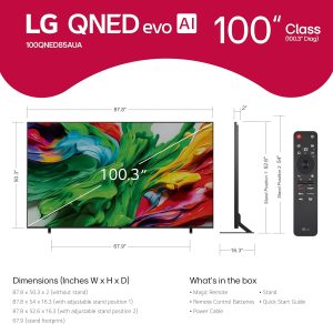 LG 100-Inch Class QNED evo AI QNED85A Series Mini LED 4K Smart TV w/AI Picture, AI Sound, HDR10, AI Super Upscaling 4K, Filmmaker Mode, Wow Orchestra, Alexa Built-in,100QNED85AU